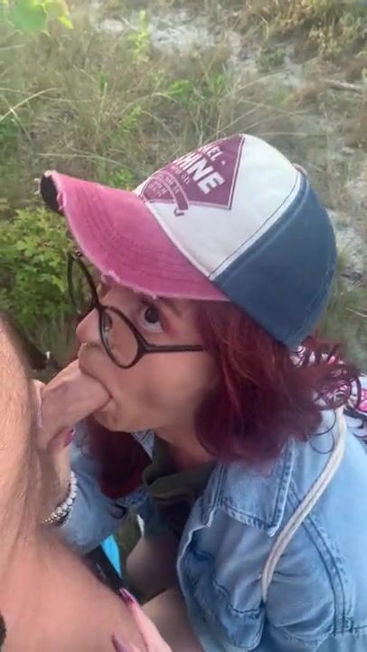 TRANNY BITCH SUCKS DADDYS COCK ON THE BEACH